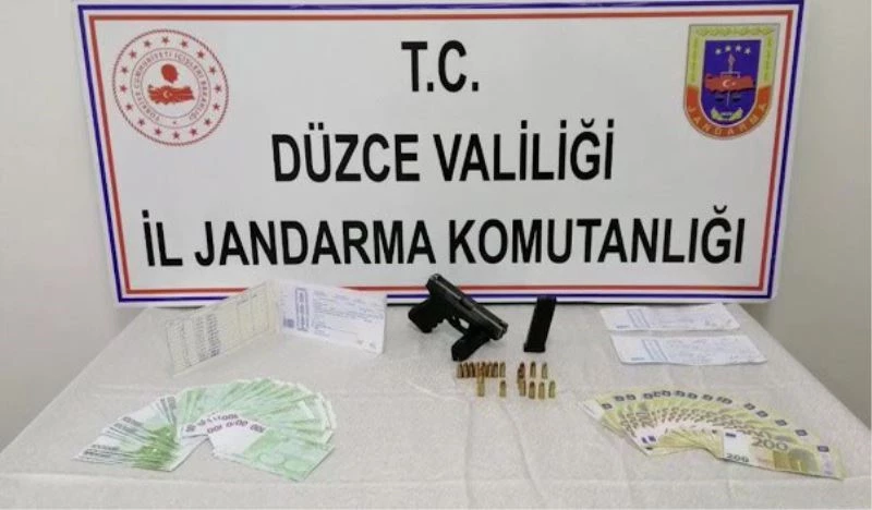 Düzce İl Jandarma Komutanlığı ekipleri gelen ihbar üzerine yağma suçu işleyen çeteye operasyon düzenlendi. İl Jandarma Komutanlığı’na bağlı ekiplerin katıldığı operasyonda çete üyelerinin iş yerlerine ve evlerinde arama yapan jandarma ekipleri, çok sayıda senet, çek ile birlikte 1 adet ruhsatsız tabanca ve 10 bin 300 Euro sahte para yakaladı.