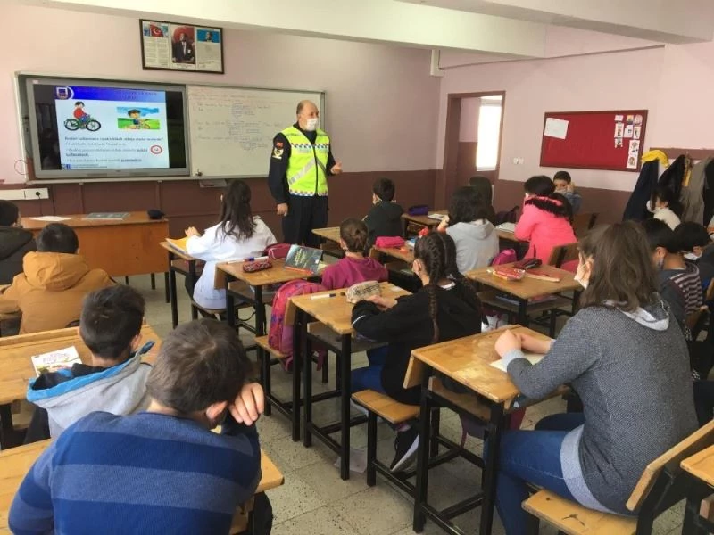Kırkpınar Ortaokulu ve Çayıryolu İlköğretim Okulunda toplam 68 öğrenciye, öğrenci ve yaya geçitlerinde hareket tarzı, trafikte uymaları gereken kurallar, özel araç ve servis araçlarında dikkat etmeleri gereken hususlar anlatılırken, Covid-19 ile mücadelede uyulması gereken kurallar da hatırlatıldı.