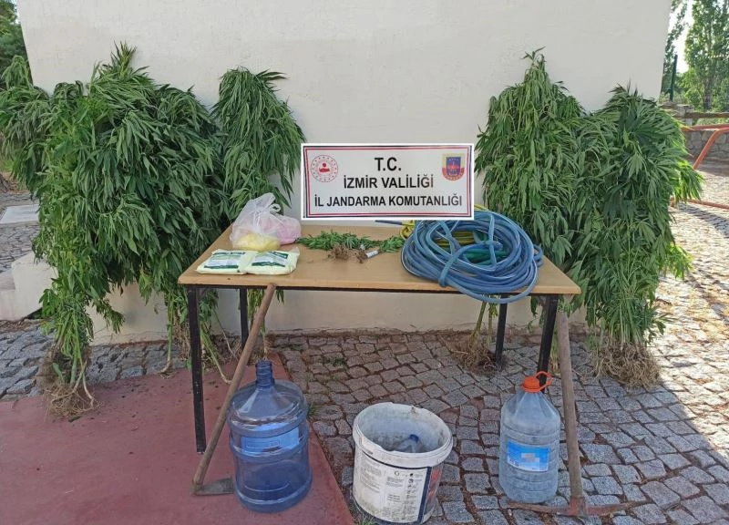 İzmir İl Jandarma Komutanlığı’na bağlı ekipler tarafından Ödemiş, Torbalı, Urla, Kiraz, Kemalpaşa, Karaburun, Menderes, Bayındır. Seferihisar, Dikili ve Selçuk ilçelerinde uyuşturucu satıcılarına yönelik, 04-14 Haziran 2021 tarihleri arasında çok sayıda operasyon ve uygulama gerçekleştirildi. Jandarma Narkotik Timleri, narkotik köpekleri ve drone destekli olarak icra edilen operasyonlarda ormanlık alan içerisinde ekili vaziyette 5 bin 433 kök kenevir bitkisi, yaklaşık bin 500 gram kubar esrar maddesi, 56,65 gram metamfetamin, 4 gram bonzai, 3 adet bong olarak tabir edilen uyuşturucu içme aparatı, 2 adet ruhsatsız pompalı av tüfeği, 11 adet av fişeği ve 94 adet tabanca fişeği ele geçirildi. Narkotik köpeğinin uyuşturucu maddeyi bulma anı ise kamera tarafından görüntülendi.