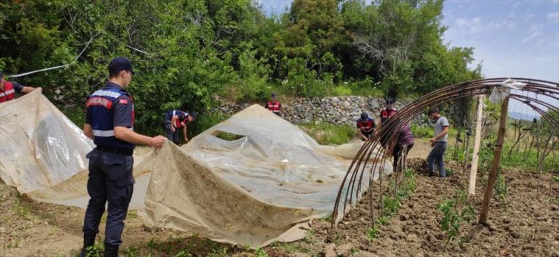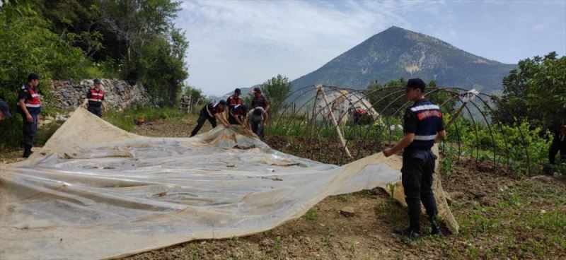 ANTALYA (AA) - Antalya'nin Akseki ilçesinde jandarma ekibi, bir gazinin zarar verilen sera ve bahçesini kazma ve küreklerle düzelterek eski haline getirdi.