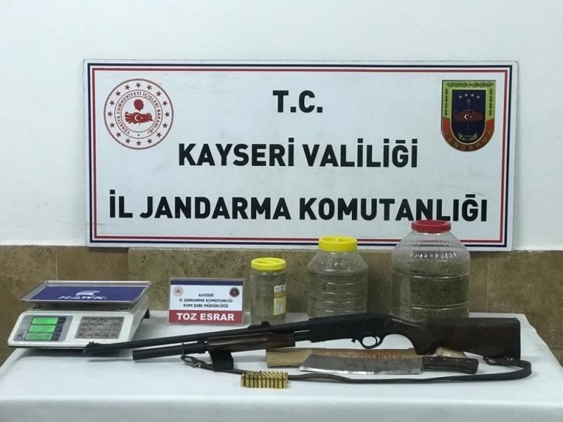 Kayseri İl Jandarma Komutanlığı tarafından yapılan asayiş faaliyetlerinde, arama yapılan araç ve evde 6 kilo toz esrar ele geçirildi.