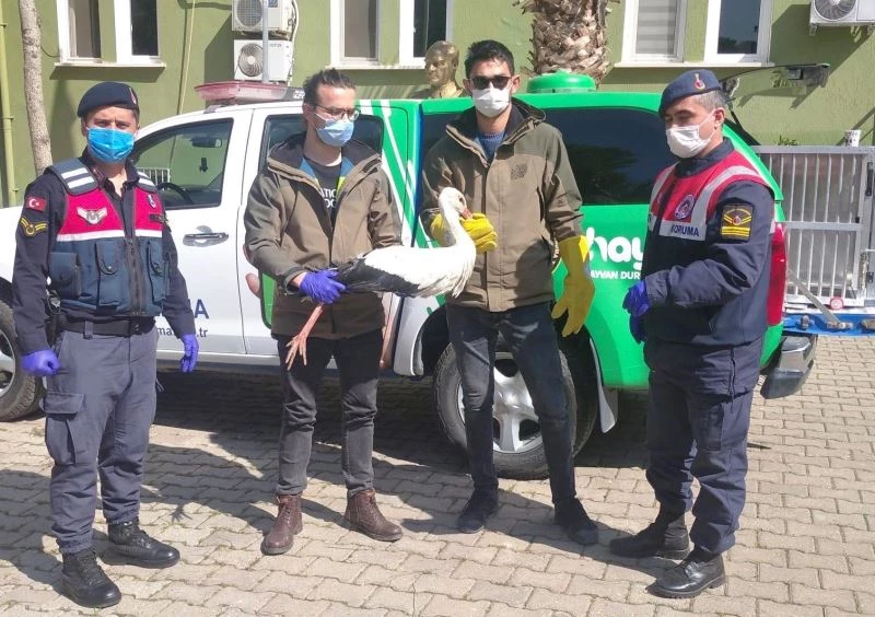 Manisa’nın Saruhanlı ilçesinde devriye yapan jandarma ekipleri tarafından tel çitlere takılarak kanadından ve ayağından yaralanmış bir vaziyette leylek bulundu. Ekipler tarafından jandarma karakoluna getirilen yaralı leylek, tedavisi yapılmak üzere Doğa Koruma ve Milli Parklar ekiplerine teslim edildi.