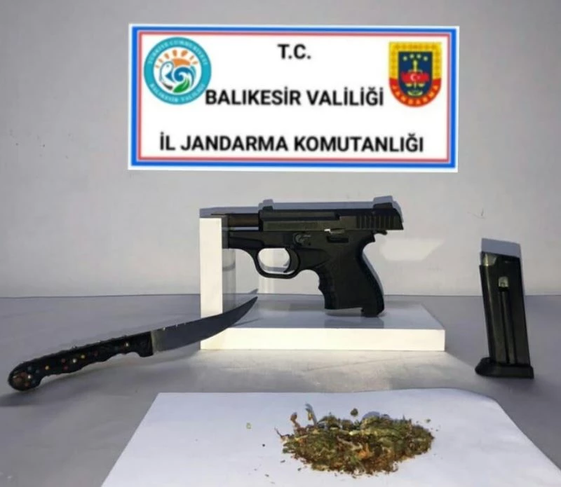Balıkesir’in Edremit ilçesinde şüpheli hareketlerde bulunan iki kişinin jandarma tarafından yapılan üst aramasında 1 tabanca, 1 bıçak ve 3 gram kubar esrar ele geçirildi.