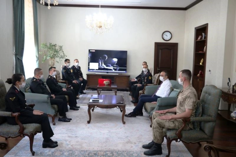 Jandarmanın Teşkilatının kuruluşunun 181. yıl dönümü nedeniyle İl Jandarma Komutanı Jandarma Kıdemli Albay Hakan Başaklıgil, Vali Recep Söytürk’ü makamında ziyaret etti.