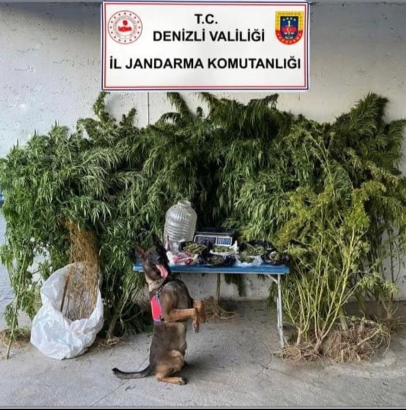 Denizli İl Jandarma Komutanlığı ekipleri il genelinde uyuşturucu ile mücadele çerçevesinde çalışmalarına devam ediyor. Pamukkale ilçesinde gerçekleştirilen operasyonda, narkotik köpeğinin tepki verdiği arama 2 kilo 500 gram kubar esrar, 16 kök kenevir ve 1 adet hassas terazi ele geçirildi.