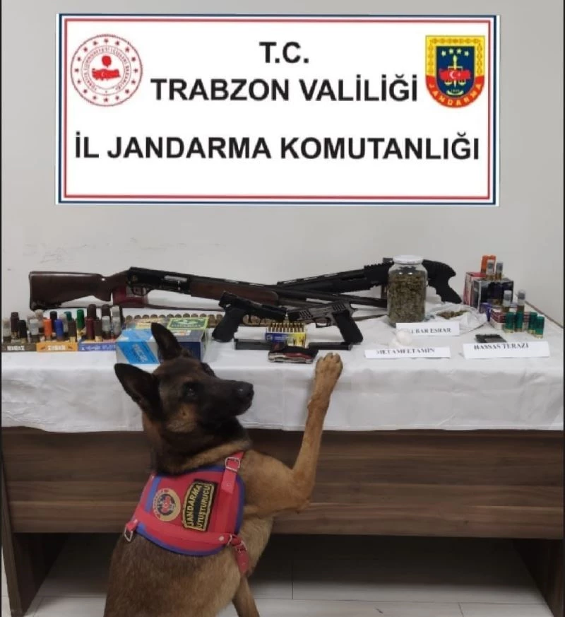 Alınan bilgiye göre, Trabzon İl Jandarma Komutanlığı Kaçakçılık ve Organize Suçlarla Mücadele Şube Müdürlüğünün yapmış olduğu saha araştırmaları sonucu Of İlçesi Bölümlü Mahallesinde E. A. (20) isimli şahısın evinde uyuşturucu madde bulundurduğu ve piyasaya sürmeye çalıştığı tespit edildi. Adli makamlardan alınan arama kararı sonrası şahsın evine yapılan operasyonda 1 kilogram kubar esrar, 100 gram Metanfetamin, 2 adet ruhsatsız tabanca, 2 adet av tüfeği ile 346 adet fişek ele geçirildi. E.A. gözaltına alınırken, olayla ilgili inceleme sürüyor.
