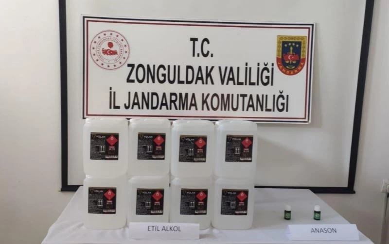 Zonguldak İl Jandarma Komutanlığı ekipleri, yaptıkları çelışmalar neticesinde A.D. isimli şahsın Kdz.Ereğli ilçesine etil alkol ile anason aroması maddesi getireceği bilgisi alması üzerine operasyon başlattı. Jandarma ekipleri, Alaplı ilçesi Kılçak Köyü yol kontrol noktasında durdurulan bir araçta yapılan arama sonucunda 8 adet 5 litrelik plastik bidon içerisinde olmak üzere toplam 40 litre etil alkol ve 2 adet 20 mililitrelik anason aroması ele geçirdi. Bulunan malzemelere el konulurken, gözaltına alınan A.D., ifadesinin alınmasının ardından Cumhuriyet savcısı talimatı ile serbest bırakıldı.
