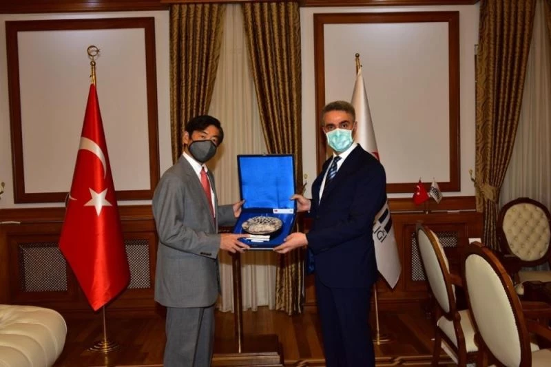 Bir dizi ziyaretlerde bulunmak üzere Malatya’ya gelen Japonya Ankara Büyükelçisi Akio Miyajima, Vali Aydın Baruş’u makamında ziyaret etti. Vali Baruş tarafından valilik önünde karşılanan Büyükelçi Miyajima, ilk olarak Valilik Şeref Defterini imzaladı.