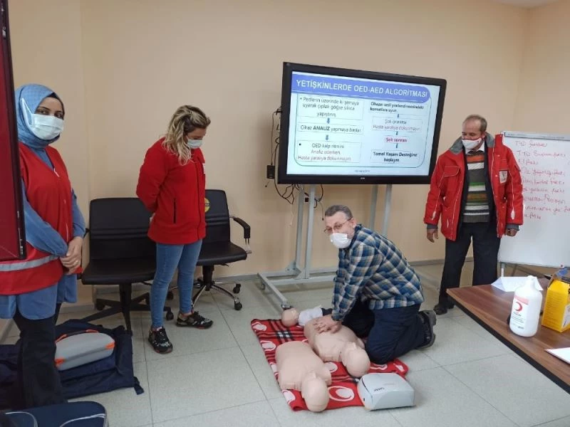 Eğitimlerde kursiyerlere tıkanıklıklar, zehirlenmeler, kanama, şok, havale, araçtan kazazede çıkarma, acil durumlarda neler yapabilecekleri uygulamalı olarak anlatıldı.