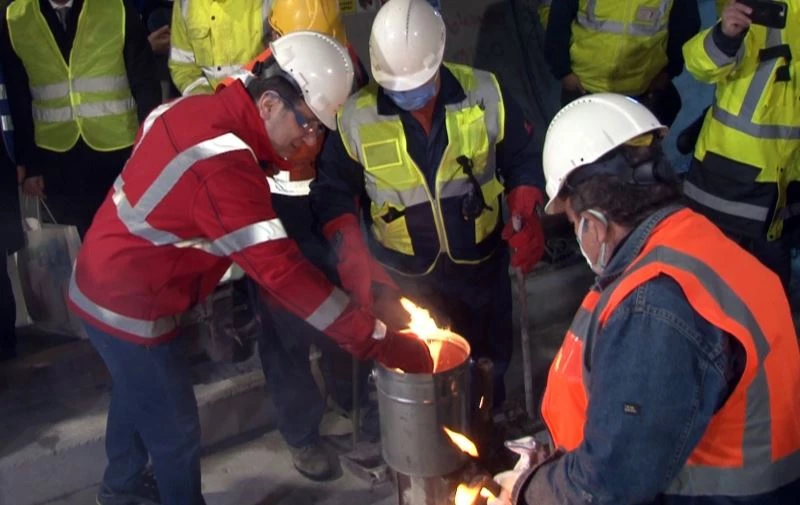 İBB Başkanı Ekrem İmamoğlu’nun konuşmasının ardından ray kaynatma törenine geçildi. Ray birleştirme töreninden sonra İmamoğlu, metro hattı inşaatındaki çalışmaları inceledi.