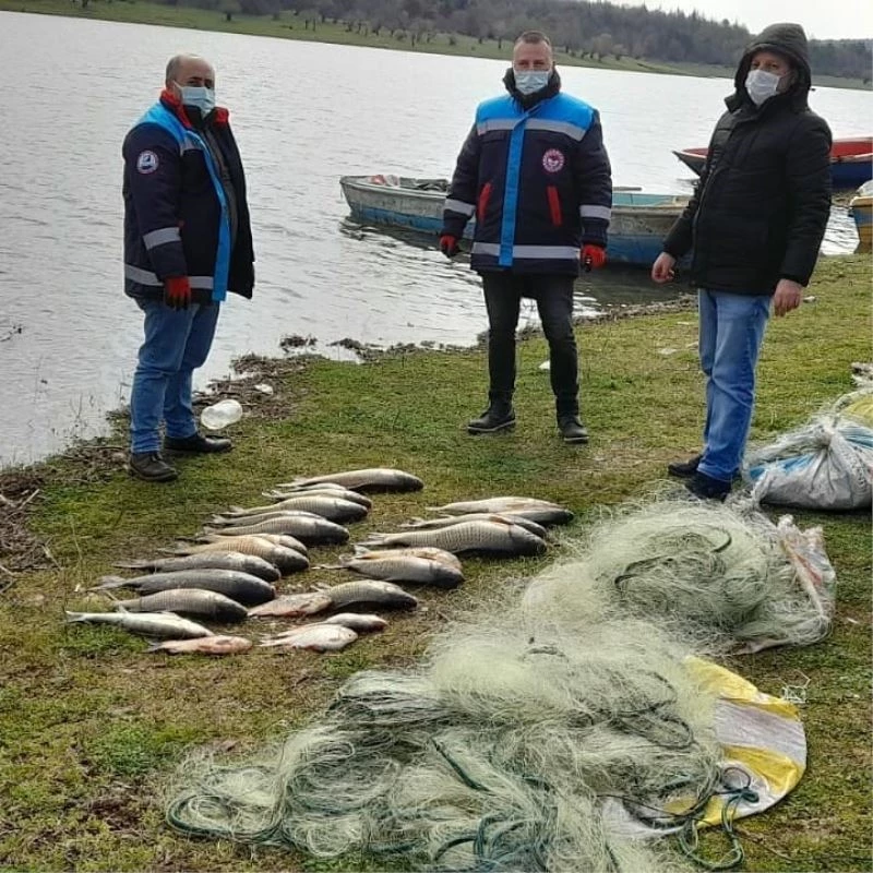 Kırklareli’nde baraj gölüne serilen 800 metre ağ ele geçirildi.