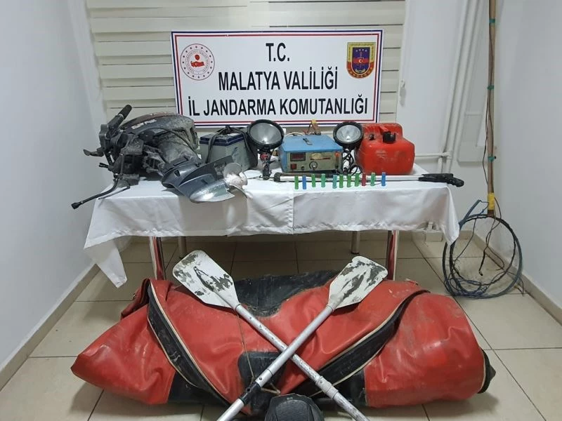 Yazıhan İlçesinde Sürür Mahallesi Karakaya Baraj Gölü kıyı hattında Jandarma Bot Timinin yapmış olduğu önleyici kolluk devriyesinde, 4 şahsın akü ile suya elektrik vermek suretiyle balık avladıkları tespit edildi.
