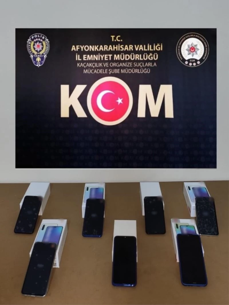 Afyonkarahisar İl Emniyet Müdürlüğü ekipleri tarafından kent merkezinde kaçakçılık suçlarının önlenmesine yönelik olarak yapılan çalışmalar sonucu düzenlenen operasyonda, gümrük kaçağı cep telefonu satışı yaptığı tespit edilen 1 şahsın ikametinde ve kullanmakta olduğu aracında yapılan aramalarda 7 adet gümrük kaçağı akıllı cep telefonu ele geçirildi.