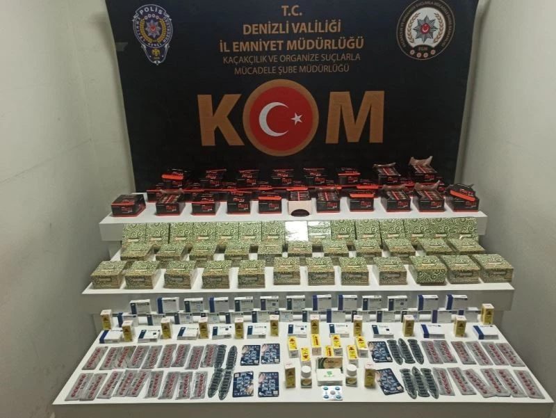 Denizli’de ‘Eşya Kaçakçılığı’ operasyonunda yakalanan 2 şüpheliden bin 908 adet cinsel içerikli ilaç ve çok sayıda kaçak malzeme ele geçirildi.