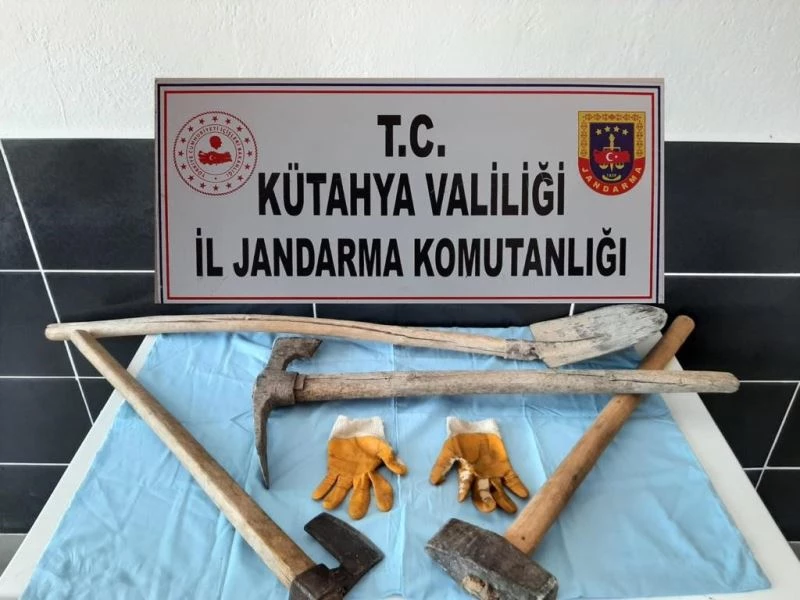 Kütahya’da jandarma ekipleri kaçak kazı yapan 2 kişiyi suçüstü yakaladı. Olay yerinde, kazıda kullanılan birçok materyal ele geçirildi.