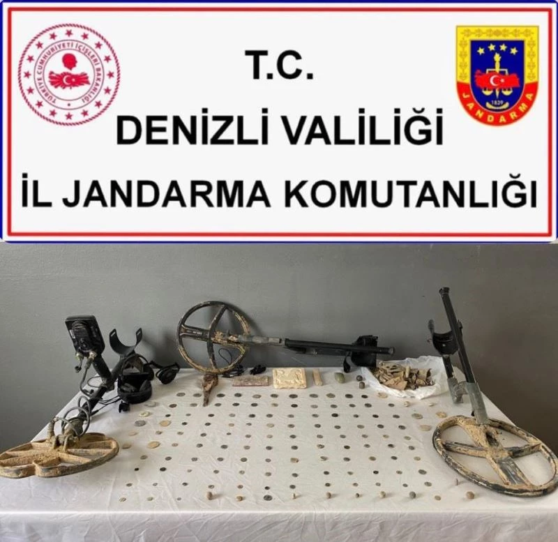 Şüpheli 3 kişinin kaçak kazı yaparken yakalanırken, bulundukları alanda yapılan aramada 200 adet Sikke, Tarihi Heykel Figürü, 75 adet Kültür Varlığı Vasfı Taşıyan Obje ve 3 adet Dedektör ele geçirildi. Jandarma ekipleri ele geçirilen eserleri Kültür ve Tabiat Varlıkları biriminin incelemesi için Denizli İl Müze Müdürlüğüne teslim edildi.