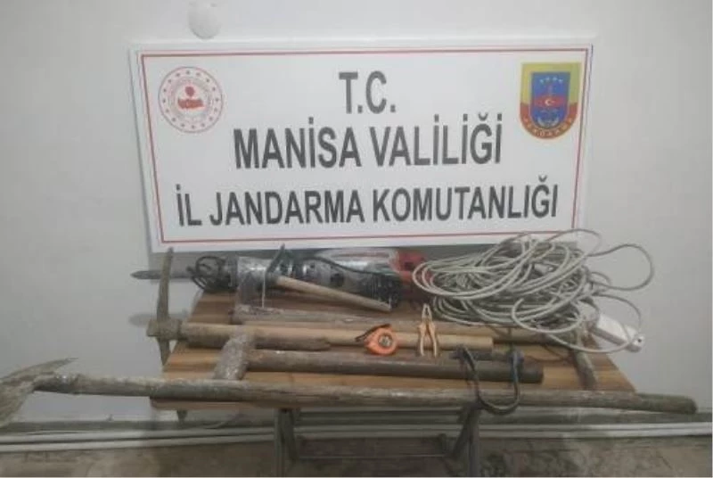 Manisa’nın Saruhanlı ilçesine bağlı Nuriye Mahallesinde Jandarma Komutanlığının elde ettiği istihbari çalışmalar doğrultusunda gece yarısı 1. derece sit alanı olan bölgede kaçak kazı ve arama yapıldığı tespit edildi. Jandarmanın yaptığı operasyonda şüpheli E.E. (54) ve M.T. (53) isimli şahısların kullanmış olduğu 1 adet hilti, 1 adet pense, 2 adet çapa, 1 adet metre, 2 adet kazma, 1 adet kürek, 1 adet balyoz, 1 adet uzatma kablo, 1 adet tutamaçlı demir, 2 adet boşluk bulma çubuğu ve 2 adet demir kazık ele geçirildi. Ele geçen malzemeler jandarma tarafından muhafaza altına alınırken kaçak kazıyla ilgili olarak tahkikat başlatıldı. Şüpheli E.E. ve M.T. jandarmada ifadelerinin alınmasının ardından serbest bırakıldı.