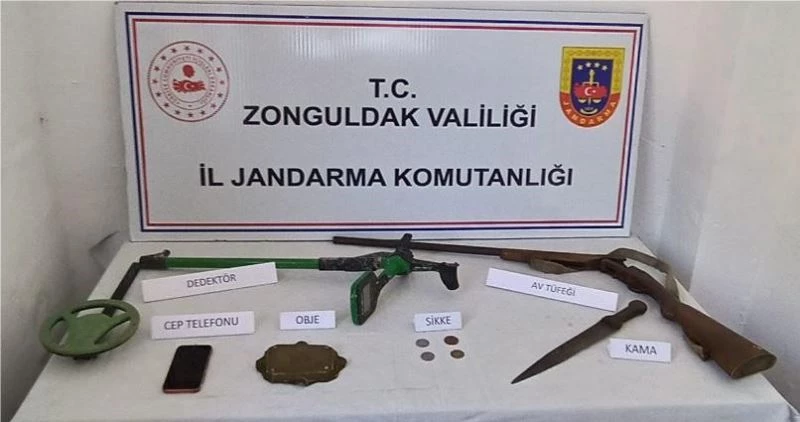 Edinilen bilgiye göre, Zonguldak İl Jandarma Komutanlığınca yapılan çalışmalar sonucunda Çaycuma ilçesinde 1 kişinin evine baskın düzenlendi. Baskın esnasında ekipler evde 1 adet pirinç tarihi obje, 1 adet hançer, 4 adet sikke, 1 adet detektör ve 1 adet av tüfeği ele geçirildi. Jandarmada ekiplerince yakalanıp ifadesi alınan şüpheli adliye sonrası müteakip serbest bırakıldı.