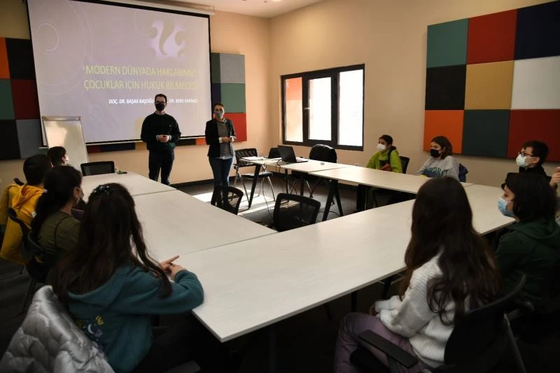 Ücretsiz olarak düzenlenen atölye çalışmasında eğitmenlik yapan Doç. Dr. Kadir Berk Kapancı da amaçlarını, “Atölye’nin öncelikli amacı çocukların belli bir hukuk bilinci edinmesi. Yanı sıra geleceği belirleyecek bireyler olarak çocuklarımızın çevreyle, hayvanlarla ilgili duyarlılıklarını geliştirmek, yeni gelişen teknolojiler, yapay zeka, robotlar gibi hayatımıza girmekte olan yeni kavramlar ve bunların hukukla olan etkileşimi hakkında çocuklara bilgiler kazandırmak amaçlarımız arasında. Bu anlamda çocuklara farkındalık kazandırmak ve yine onları bunların üzerine bir kez daha düşündürmek istiyoruz” diye anlattı.