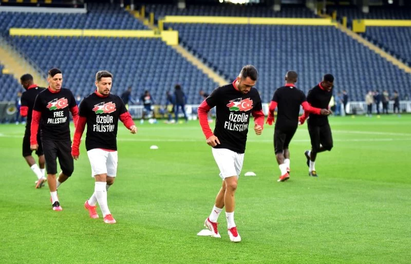 Fenerbahçe ve Sivasspor, ısınma bölümüne Filistin’e destek tişörtleriyle çıktı.