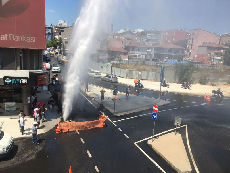 Kadıköy’de İSKİ’nin çalışmasında su borusu patladı, metrelerce yükseğe su fışkırdı