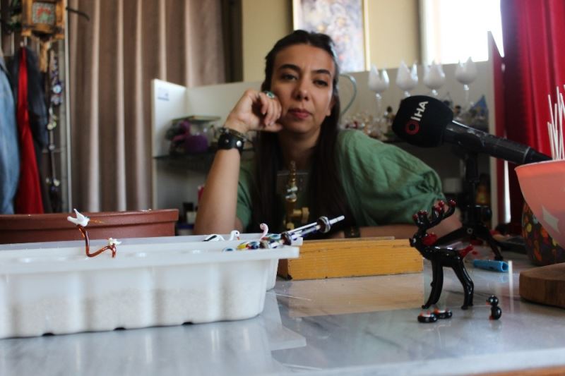 Erzurum’da cam sanatı ilgilenen tek kadın zanaatçı Aynur Bayram, cama şekil vererek birbirinden farklı hediyelik eşyalar üretiyor.
