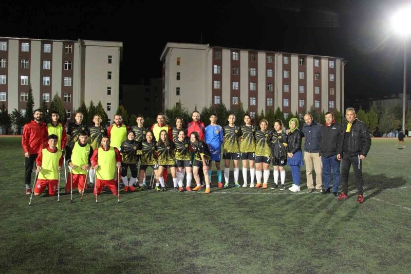 Denizli Ampute Futbol Takımı ve Denizli Kaplanlarspor Kadın Futbol Takımı, kadına şiddete dikkat çekmek amacıyla gösteri maçı yaptı.