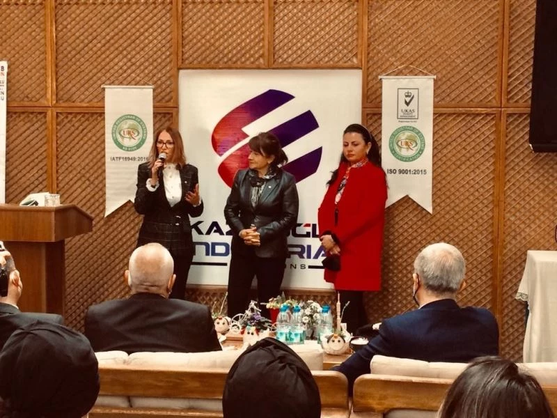 Programın ikinci bölümünde ise yapılan toplantıda iş insanı İsmet Kazcıoğlu konuklarına yönelik yaptığı konuşmasında Çin Halk Cumhuriyeti ile birlikte 18 ülkeye ihracat yaptıklarını, tesislerde savunma sanayi, otomotiv, traktör, demiryolu makineleri ve deniz araçları sektörlerine basınçlı boru ve hortum kompleleri, soğuk şekillendirilmiş alüminyum ve çelik ürünlerle direksiyon sistemleri ürettiklerini hatırlattı. 28 çalışma arkadaşıyla 3 yıl önce çıktıkları yolda aralarında 2 kadın çalışan olduğunu, günümüzde ise 280 çalışan arasında 60 kadın çalışanın yer aldığını, Kazcıoğlu Industrial’in gelişerek büyümesini sürdürmesinde kadın çalışanların da önemli emeği olduğunu hatırlatarak her birine ve tüm çalışanlarına teşekkür etti.