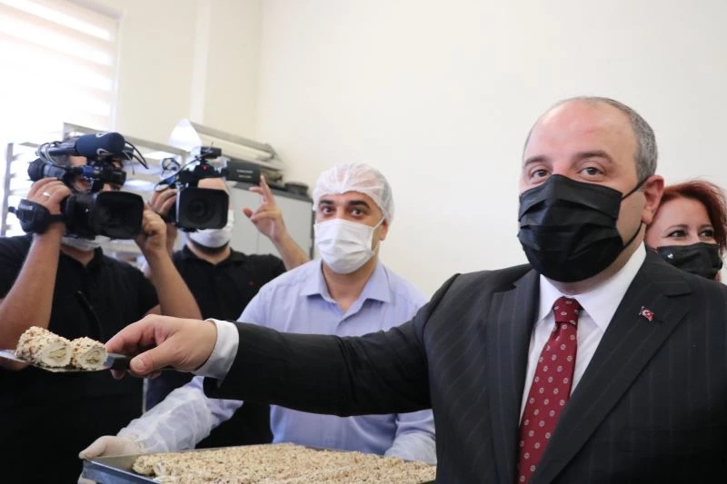 Sanayi ve Teknoloji Bakanı Mustafa Varank, açılışını yaptığı Kadın Girişimciler Destek Merkezi (KAGİDEM)’de incelemelerde bulundu. Bakan Varank, merkezde üretilen lokumları elleriyle keserek, basın mensuplarına ikram etti.