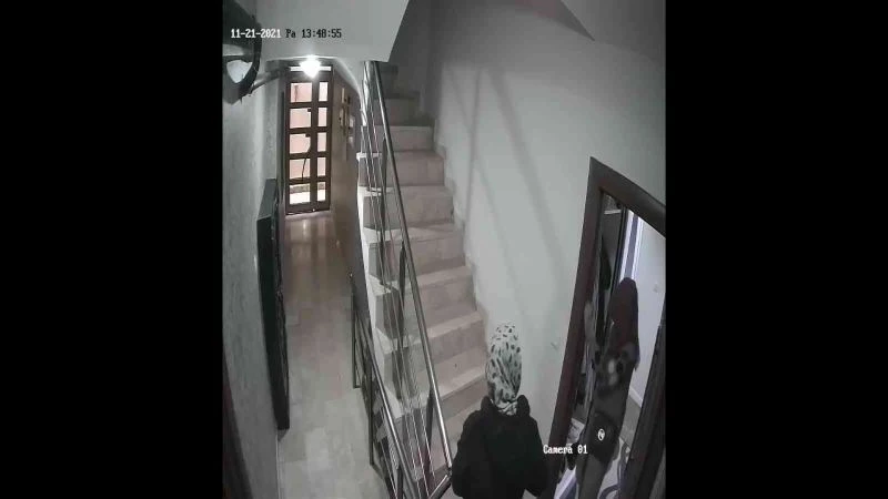 Öte yandan, kadın hırsızların etrafı keşif ettikten sonra kapıları zorlaması ve eşarpla kamerayı kapatarak parmak izlerini silmesi apartmanın kameralarına yansıdı. Olay ile ilgili soruşturma devam ediyor.