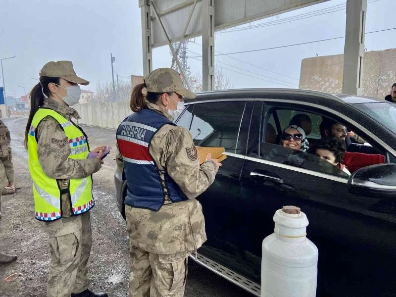 Ağrı’da, 8 Mart Dünya Kadınlar Günü etkinlikleri kapsamında Jandarma ekipleri uygulama noktasındaki araçlarda bulunan kadınların Kadınlar Günü’nü kutladı.