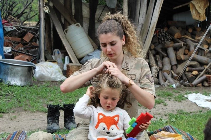 14 Haziran Pazar günü merkez üssü Bingöl’ün Karlıova ilçesinde meydana gelen 5,7 şiddetindeki depremin ardından, bölgedeki insanların yaraları sarılmaya devam ediyor. Bakanlıklar ve valilik koordinesinde AFAD, Kızılay, emniyet,jandarma ve diğer kurumlar çadır kurulumundan yemek dağıtımına kadar her türlü alanda bölgede görev yapıyor. Depremin en çok hasar verdiği Yedisu ilçesine bağlı Elmalı köyündeki de yaraların sarılması için çalışmalar sürüyor. İlk andan itibaren yaralı kurtarmadan, çadır kurmaya kadar her alanda depremzedelere hizmet veren İl Jandarma Komutanlığı’na bağlı ekiplerden, İlçe Jandarma Karakol Komutanlığında Harekat Kısım Amiri olarak görev yapan Jandarma Astsubay Çavuş İrem Sağlam’da çocukların gönlüne dokunuyor. Sahada ekip arkadaşlarına ilk günden itibaren yardım eden Sağlam, çocuklara ise abla şefkati ile yaklaşıyor. Çocukların saçlarını yapan, onlara oyunlar oynatarak depremin korkusunun üzerilerinden atmasına yardımcı olan Sağlam, sahada ellerinden geleni yapmaya çalıştıklarını aktardı.