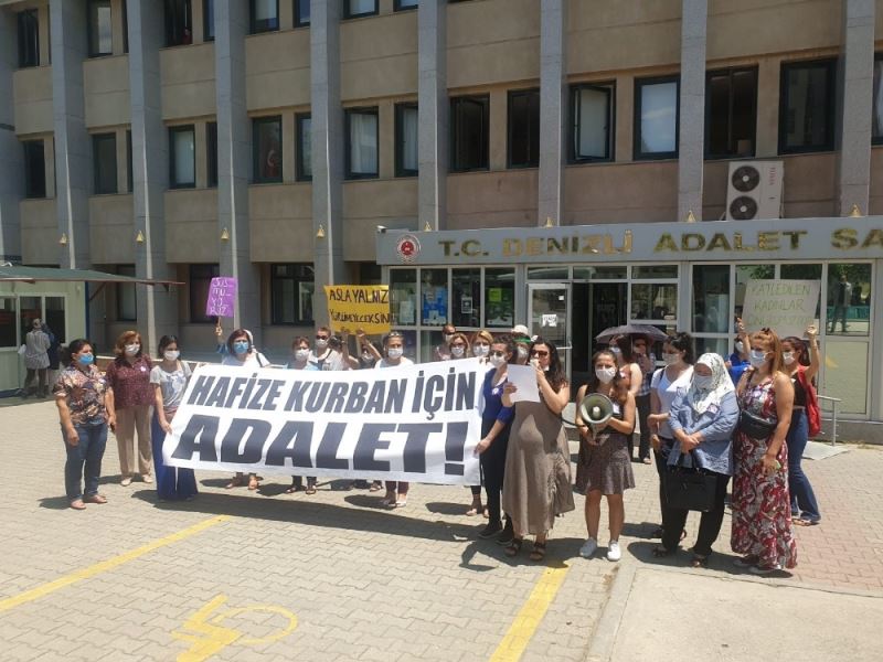 Kadın örgütleri Denizli Adliyesi önünde toplanarak dava ile ilgili açıklamalarda bulundu. Kadın örgütleri adına gazetecilere açıklamalarda bulunan Ebru Koç, “27 Ağustos 2019’da çocuklarının gözü önünde ayrılmak istediği eşi tarafından sokak ortasında boğazı kesilerek öldürülen Hafize Kurban’ın karar duruşmasına dahil olmak için toplandık. Davanın başından itibaren kamuoyu oluşturmak ve kadın cinayetlerini devlet politikalarından ayrı tutmaya çalışan anlayışın karşısında durmak için buradayız. Hafize Kurban cinayeti de tüm kadın cinayetleri gibi bu güvencesizliğin ve önemsizliğin sonucudur” dedi.