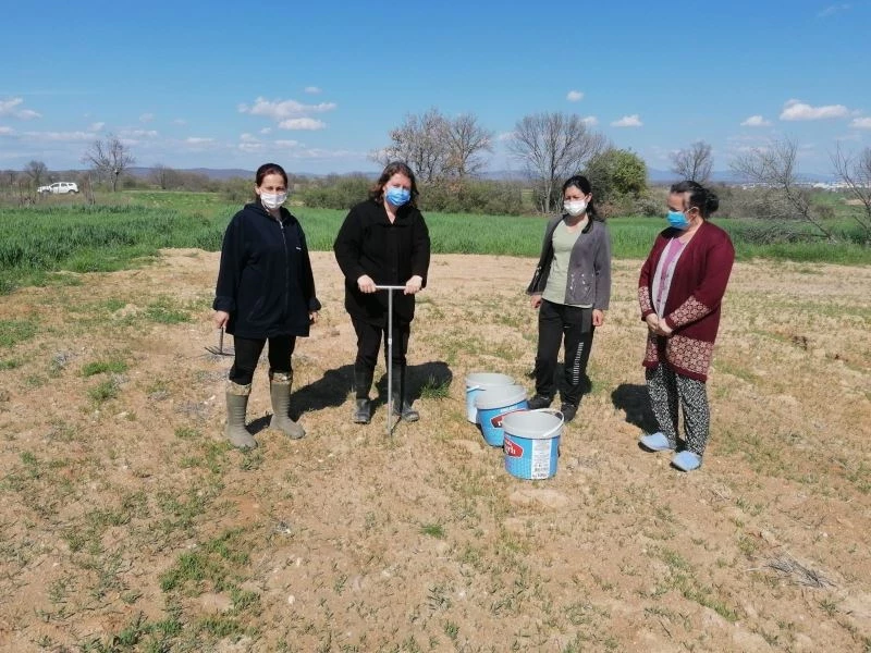 Kursu başarıyla tamamlayan kadın üreticiler kursta öğrendikleri bilgiler çerçevesinde tesis edecekleri bağ alanlarında toprak numunelerini kendi aldı.