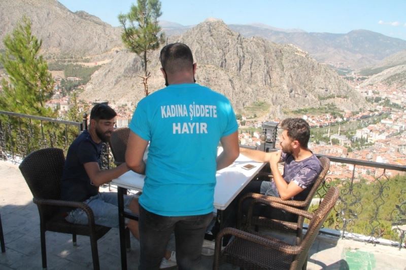 Amasya’da bir işletme sahibi, kadına şiddete karşı farkındalık oluşturmak için personellerinin giysilerinin arkasına ve önüne şiddet gören kadınların isimlerini yazdırdı.