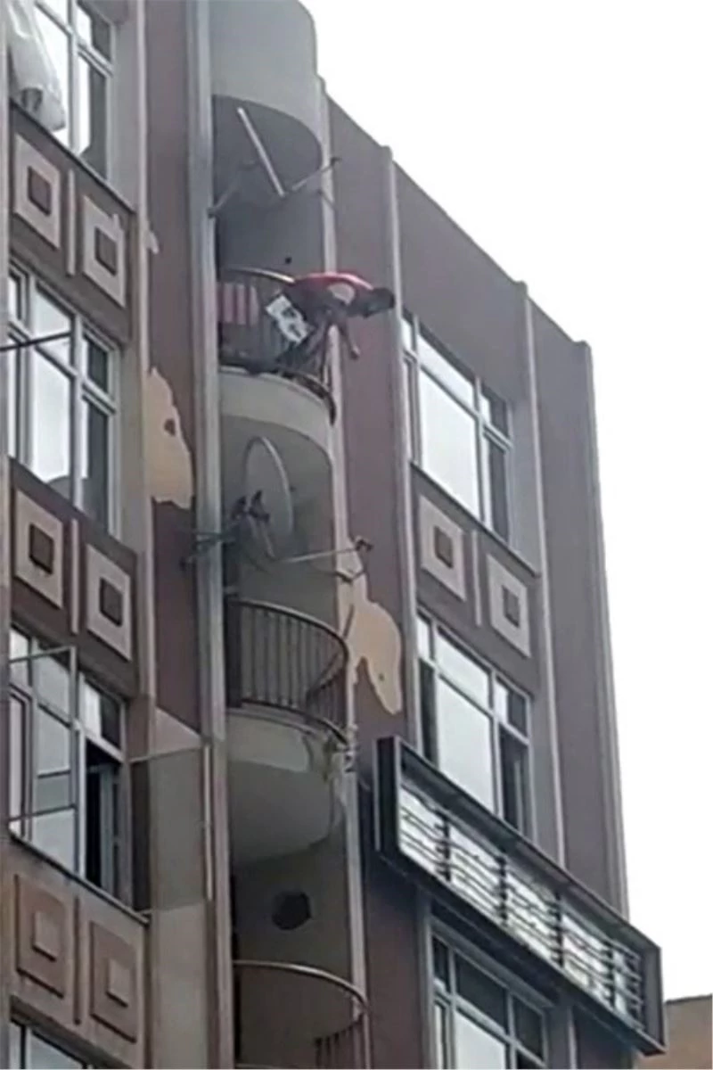 Avcılar’da yabancı uyruklu bir şahıs, aynı evde birlikte yaşadığı yabancı uyruklu adını dövdükten sonra balkondan atlamaya çalıştı. Olay yerine gelen polis ekipleri eve girip, bıçaklı adamı gözaltına alırken, o anlar cep telefonu kamerası tarafından kaydedildi.