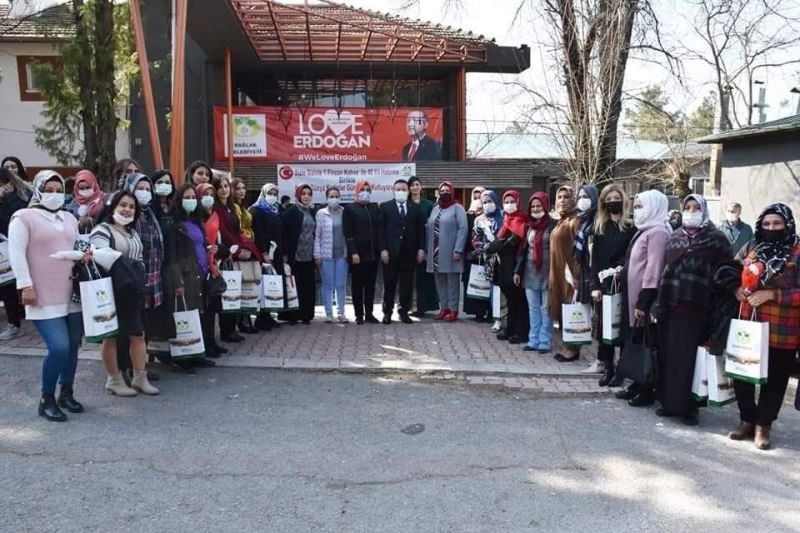 Belediyenin kadın personeli, Başkan Beyoğlu’nun eşi Dürdane Beyoğlu’na günün anısına çiçek ve hediye takdiminde bulundu.