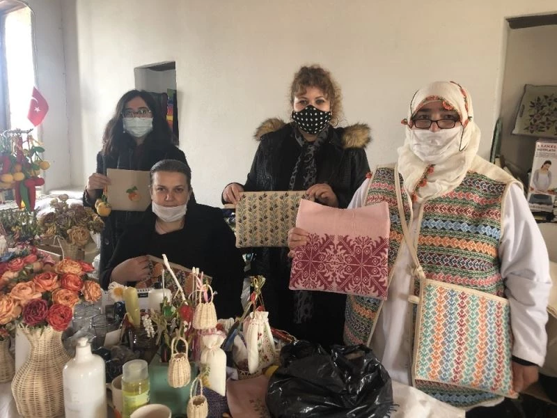 Kursiyerlerden Dilek Tavuk ise kese ve kanaviçe işlediğini belirterek, “Ev ekonomimize de destek oluyorum. Terapi gibi” diye konuştu.
