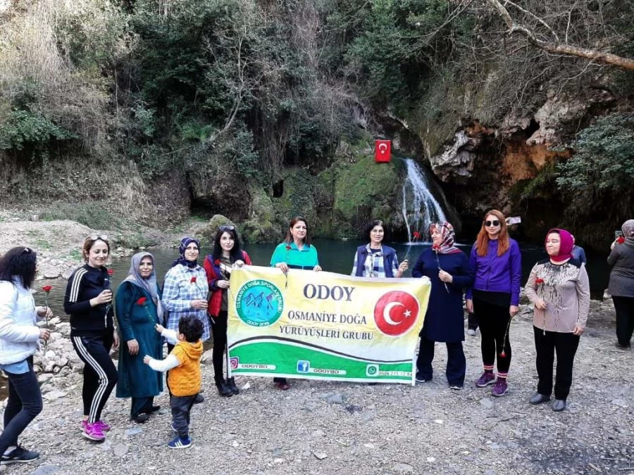 Osmaniye Doğa Yürüyüş Kulübü (ODOY) tarafından, Düziçi'ndeki Yeşil Şelale Bölgesine, dünya kadınlar gününe özel, doğa yürüyüşü etkinliği düzenlendi. Kent merkezinde bir araya gelen 19'u kadın 25 kişilik gurup, ilk olarak Karatepe Kilim Kooperatifini ziyaret ederek, burada kilim doğuma tezgahlarında çalışan kadınlara çiçek takdim edip, kadınlar gününü kutladılar. Daha sonra ise Aslantaş Barajı üzerinden geçerek Düziçi ilçesi Çerçioğlu Köyü sınırlarında bulunan Yeşil Şelalesine olan dört buçuk kilometrelik doğa yürüyüş parkuruna başlandı. Sorunsuz tamamlanan etkinlik sonunda öğlen vakti bayan katılımcılara güzel bir jest yapılarak yemek ikramında bulunuldu. Çay kahve ikramlarının ardından çevre temizliği yapıldı. Dünya kadınlar günü münasebetiyle toplu olarak tüm kadınların Dünya Kadınlar Günü kutlandı. ODOY Başkanı Osman Demirkaynak tarafından tüm bayan üyelere karanfil takdim edip, kadınlar gününü kutladı. Başkan Demirkaynak, etkinliklerin devam edeceğini belirterek, "Her zaman sosyal projeler gerçekleştirmeye devam ediyoruz. Farkındalık yaratmak adına insanlara şehrin stresinden ve monotonluğundan uzak tutmak adına hafta sonlarında Alışveriş Merkezlerinde değil de doğada geçirmeniz için elimizden gelenleri yapıyoruz. Osmaniye'mizde saklı kalmış bu kadar güzellikler var ki sizler de bu güzellikleri görmek hissetmek dolaşmak ve doğa yapısında huzur bulmak istiyorsanız Osmaniye doğa yürüyüşçüleri grubu ile beraber yürümeye davet ediyoruz." dedi.