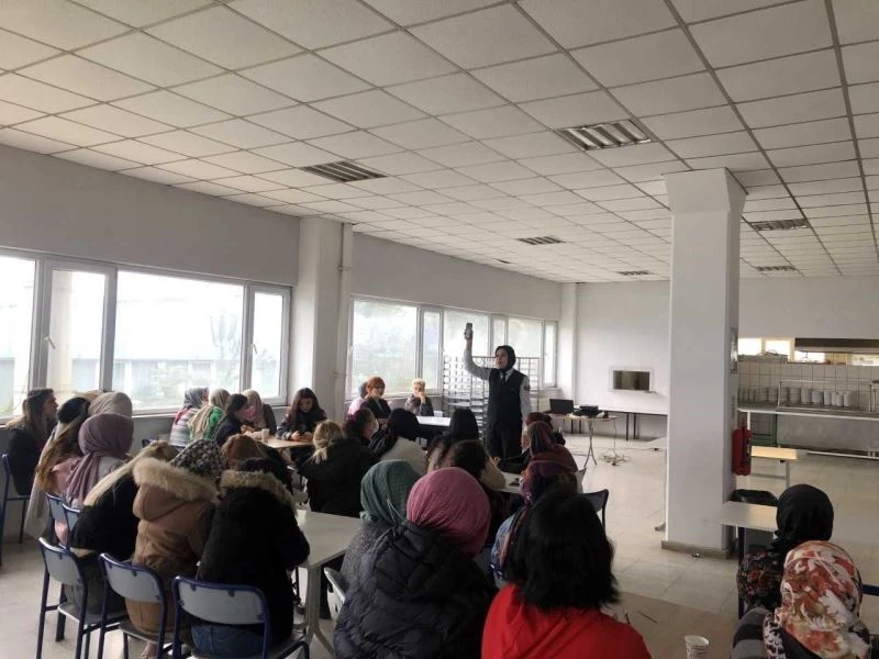 Çalışan kadınlar KADES programını akıllı telefonlarına indirerek, nasıl kullanacakları konusunda bilgilendirildi.