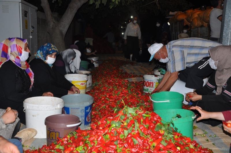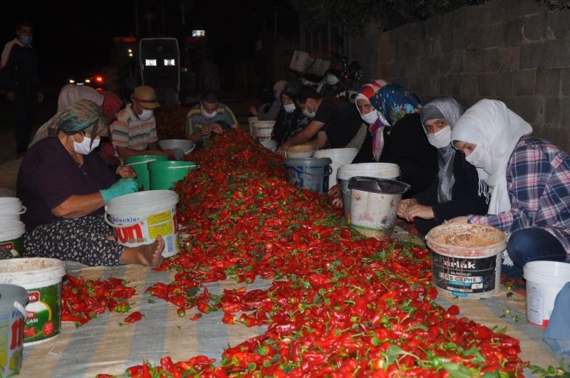 Toplanan ve örtülerin üzerine dökülen tonlarca kilo biberi temizlemek için sabah ezanı ile mesaiye başlayan kadınlara, kimi zaman eşleri ve çocukları da yardım ediyor. Sadece yemek ve çay molası vererek gün boyu biberlerin çöpünü ayıran aileler, ev ekonomisine katkıda bulunuyor. Uykusuz ya da birkaç saat uyku ile günlerce biber temizleyen ailelerden bazıları oğlu, gelini ve torunları ile birlikte çalışarak, ciddi gelire kavuşuyor. Biber çöpü temizleyen Navruz Kocager, gündüz dinlendiğini, geceleri ise eşi ile birlikte biber çöpü ayıkladığını söyledi. Geç saatlere kadar biber temizlediğini söyleyen Kocager, "Gece saat 24.00’e kadar eşim ile birlikte yaklaşık 100 kilo biber temizliyoruz" dedi.