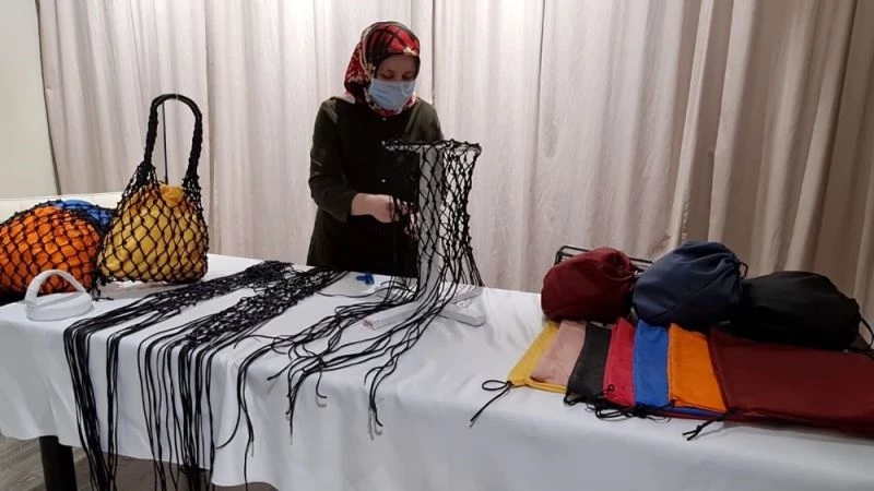 Kadınların el emeği göz nuru ürettiği deri çantalar satışa çıkıyor