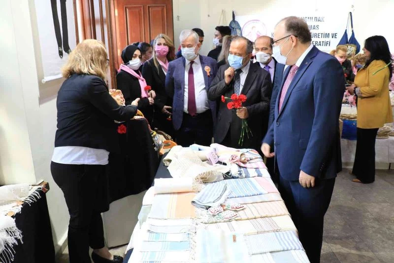 Açılışın ardından Zonguldak Valisi Mustafa Tutulmaz’a sergiyi gezerek kadınların yapmış olduğu ürünler hakkında bilgiler aldı.