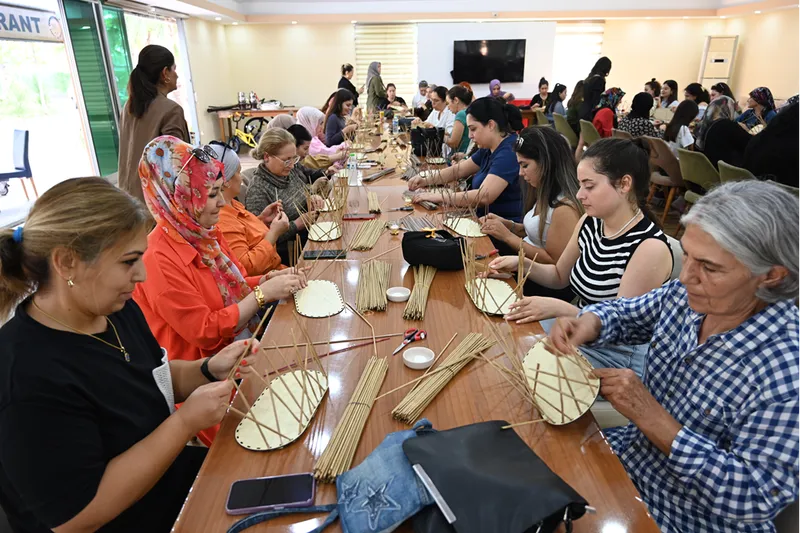 OSMANİYE - Osmaniye'de Kadirli Belediyesince "Örerek Öğreniyoruz" sloganıyla düzenlenen kursa katılan kadınlar, doğal malzemeler kullanarak sepet tasarlıyor.