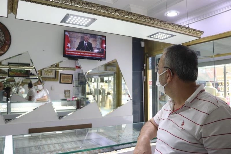 Esnaf ve vatandaslar Cumhurbaskani Erdogan'in açiklamalarini televizyondan dikkatle takip etti. Cumhurbaskani’nin dogal gaz müjdesini alan vatandaslarin mutlu oldugu gözlendi.