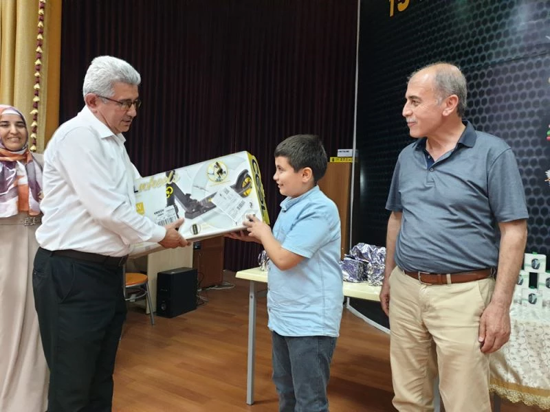 Konuşmaların ardından dereceye giren öğrencilere İlçe Milli Eğitim Müdürü İlyas Tapsız, İlçe Milli Eğitim Şube Müdürü Davut Gökçeli tarafından ödülleri verildi.