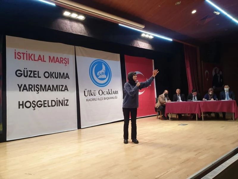 OSMANİYE -Kadirli'de, Ülkü Ocakları Eğitim ve Kültür Vakfı Şubesi tarafından liselerarası İstiklal Marşı'nı güzel okuma yarışması düzenlendi.