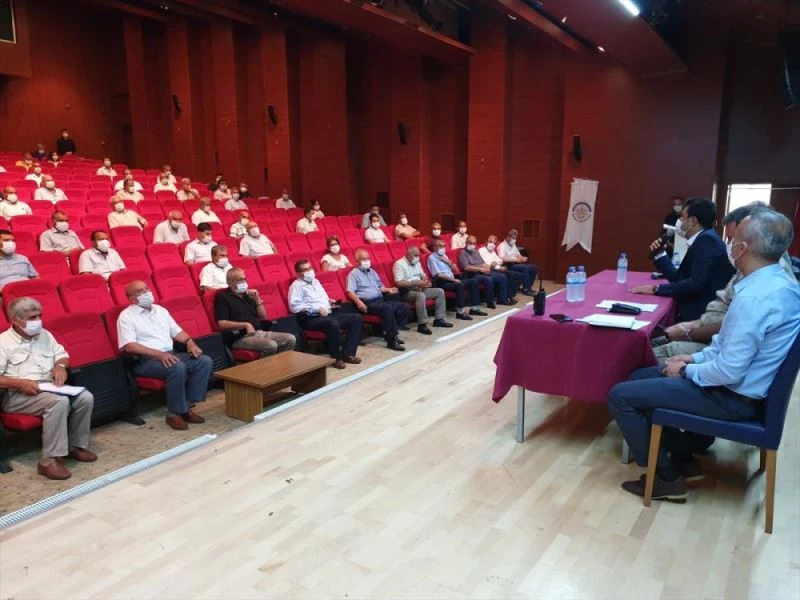 Devlet Bahçeli Kültür Merkezi'nde Kaymakam Ahmet Arik baskanliginda gerçeklestirilen toplantida, maske kullanimi, sosyal mesafe, temizlik, aniz yakilmamasi, saglik, yol, su ve güvenlikle ilgili konular görüsüldü.