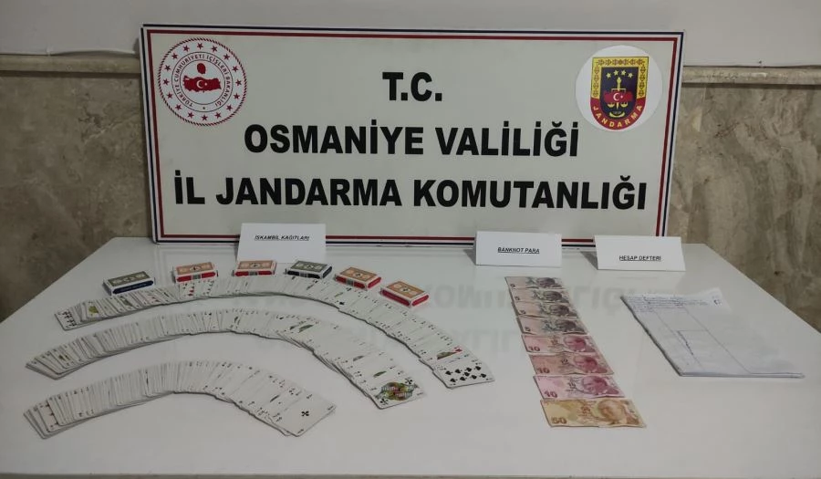 "Osmaniye İl Jandarma Komutanlığı sorumluluk sahasında bulunan M.B. isimli şahsın yayla evinde kumar oynandığının tespit edilmesi üzerine yapılan araştırma ve takip neticesinde Jandarma’nın Dedektifleri JASAT ve Kadirli İlçe J.K.lığınca yapılan operasyon sonucu evde bulunan (11) şahsa Kumar oynamak ve sosyal mesafe kurallarına uymamaktan dolayı toplam (38.159 TL) idari para cezası uygulanmış ve arama sonucunda ele geçen iskambil kâğıtlarına ve masa üzerinde bulunan paralara el konulmuştur.