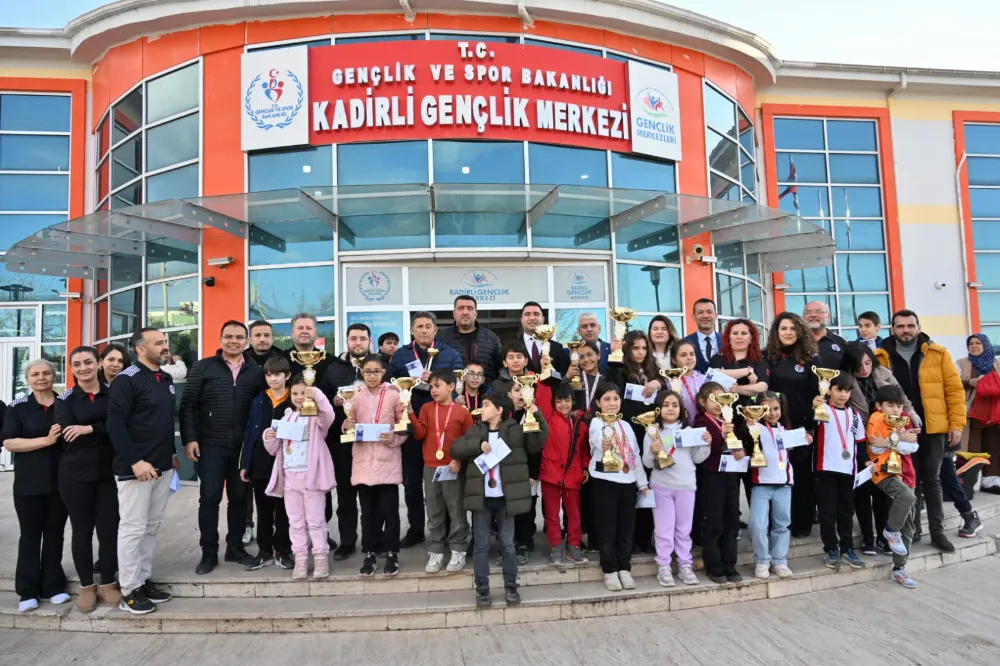 Kurtuluş Bayramı kutlamaları kapsamında Kadirli Belediyesi ve İlçe Spor Müdürlüğü tarafından düzenlenen satranç ve kort tenisi turnuvalarında dereceye giren sporculara ödülleri Belediye Başkanı Mustafa Mert Olcar ile İlçe Spor Müdürü Orkun Akıcı tarafından verildi..